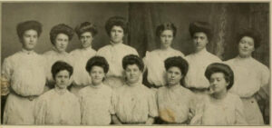 1905 Beta Chapter was established at Winston-Salem by two members of Alpha Chapter. The chapter had seven members and fifteen new initiates and thrived for three years until the administration abolished sororities.