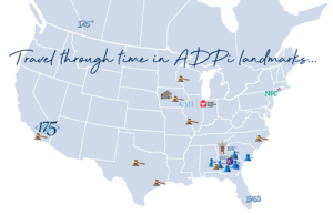 The ADPi History Tour is the opportunity to track your travels throughout 2026 all across the US andCanada through the eyes of an Alpha Delta Pi. From our founding sites in Macon, Georgia to our 175th Anniversary Grand Convention location in Palm Desert, California, follow along with your travels through the map above or printable passport below. Whether you’re visiting key locations to Alpha Delta Pi’s history, making stops at ADPi chapters on our 150 campuses, volunteering at Ronald McDonald House®, or just spotting all the violets and lions along the way, we’d love to see where you’ve been. Post photos of your travels with #ADPiHistoryTour to participate and get to stamping your passport all throughout 2026!