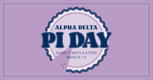 Pi Day (3.14) is a unique day to celebrate our sisterhood. Whether you love it because you love mathematics, pies, or ADPi, one thing is for sure: it’s best shared with a sister. Or with a treat. Or maybe both!