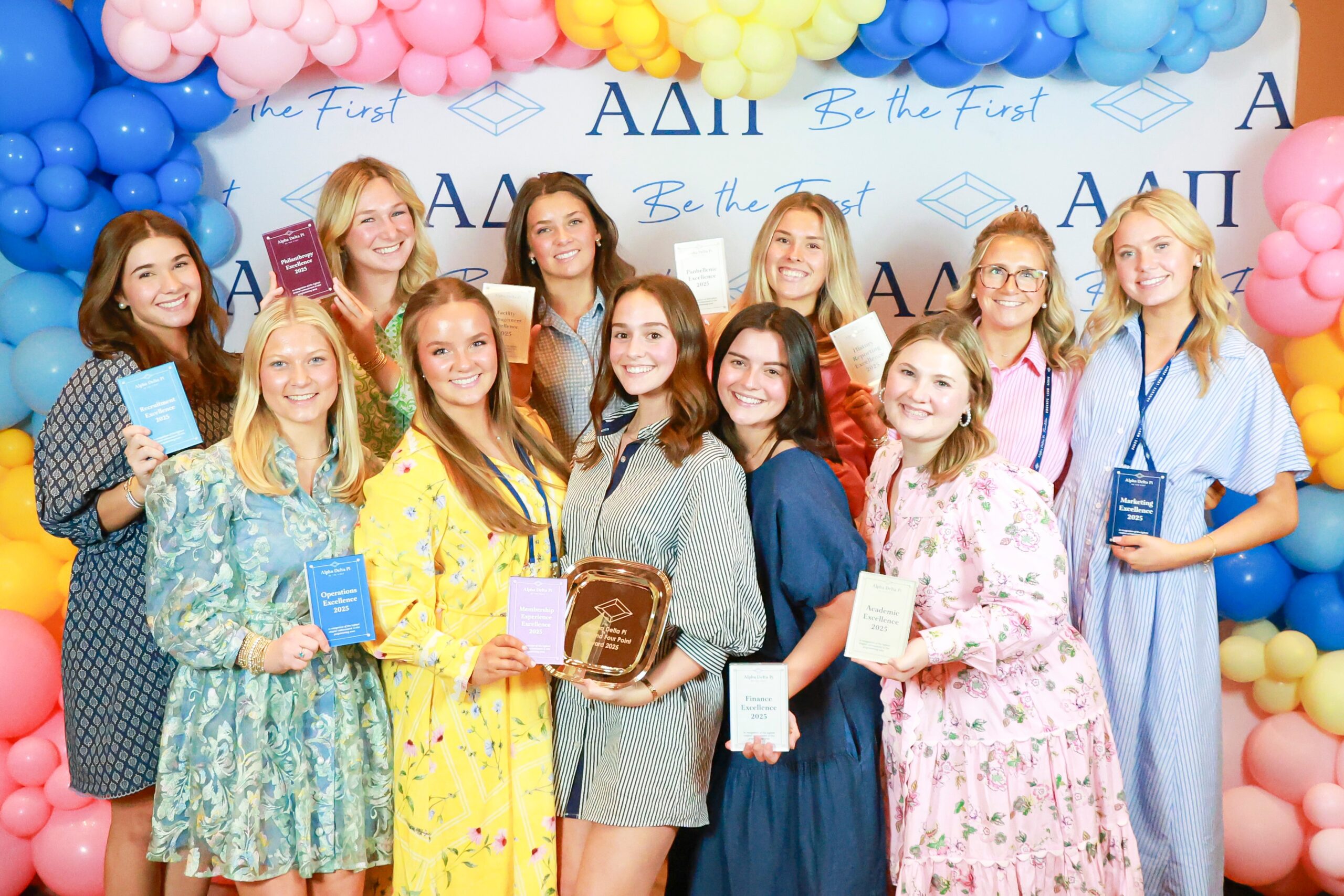 The Four Points of our diamond badge are Sisterhood, Service, Character, and Knowledge. When leading with these core values, our chapters provide an outstanding membership experience to all members. Alpha Delta Pi is honored to recognize chapters that demonstrated their commitment to their sisters through high achievement in all programming areas: academics, operations, facility management, finance, history reporting, marketing, membership experience, Panhellenic, philanthropy, and recruitment.