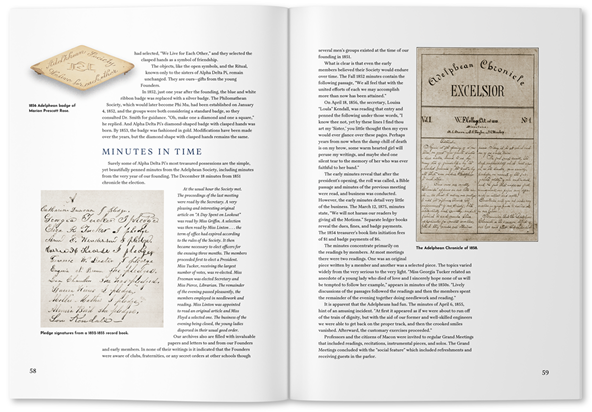 With 175 years of sisterhood in our archives, it stands to reason that it’s time to update our history book. Following 2001’s Sisters and 2011’s More Sisters, Alpha Delta Pi is pleased to publish 175 Years of Sisters in time for our summer celebrations. We’ve updated the existing copy with newly discovered photographs – including the earliest known group photo of The Adelphean Society in 1882. We’ve added chapter histories for all chapters installed since 2011 and incorporated biographies of our International Presidents who served in recent years. 175 Years of Sisters will be over 500 pages of stories, reports, photographs, quotes, and more. A full-color coffee table-style book, 175 Years of Sisters will be 9×12 in a portrait orientation, making it a beautiful addition to your bookshelf.